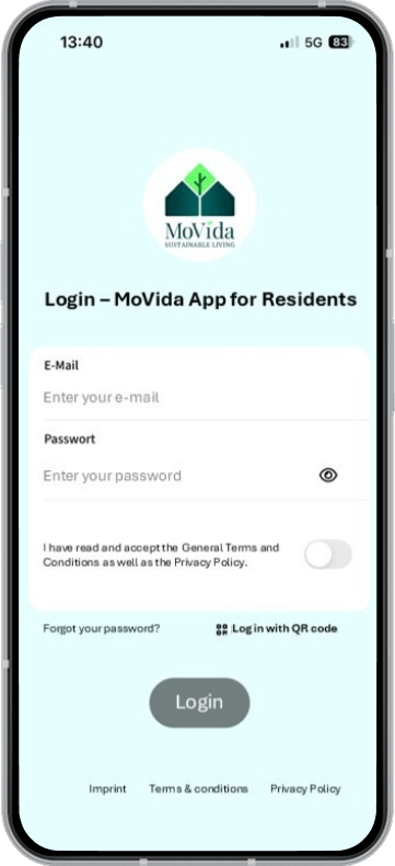 The MoVida app is your key to relaxed living. All information on registering for the app is available at the start of your lease. If you have any questions, we are always there for you.