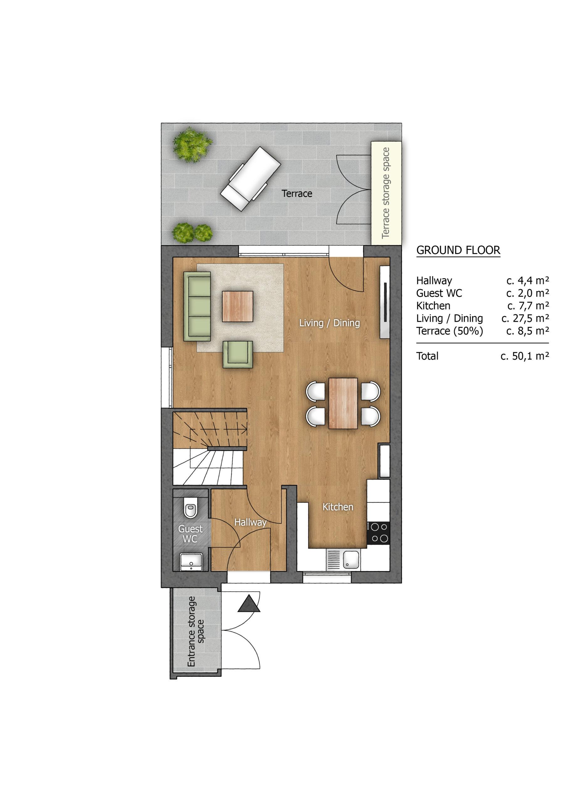 Each home impresses with high quality, stylish furnishings and clever details for your everyday life. Designer vinyl floors, electric shutters and modern bathrooms create a feel-good atmosphere. Spacious living areas and plentiful storage offer you extra comfort and convenience.