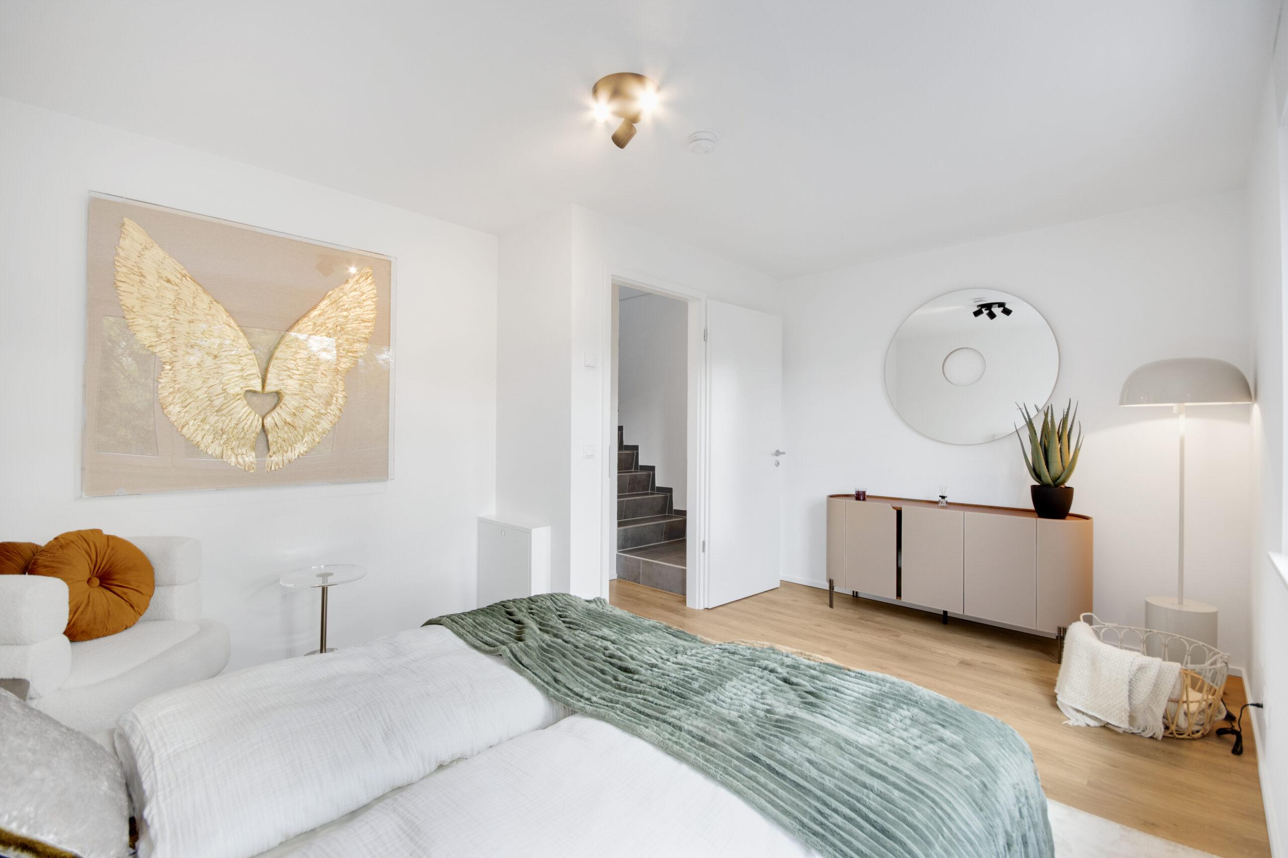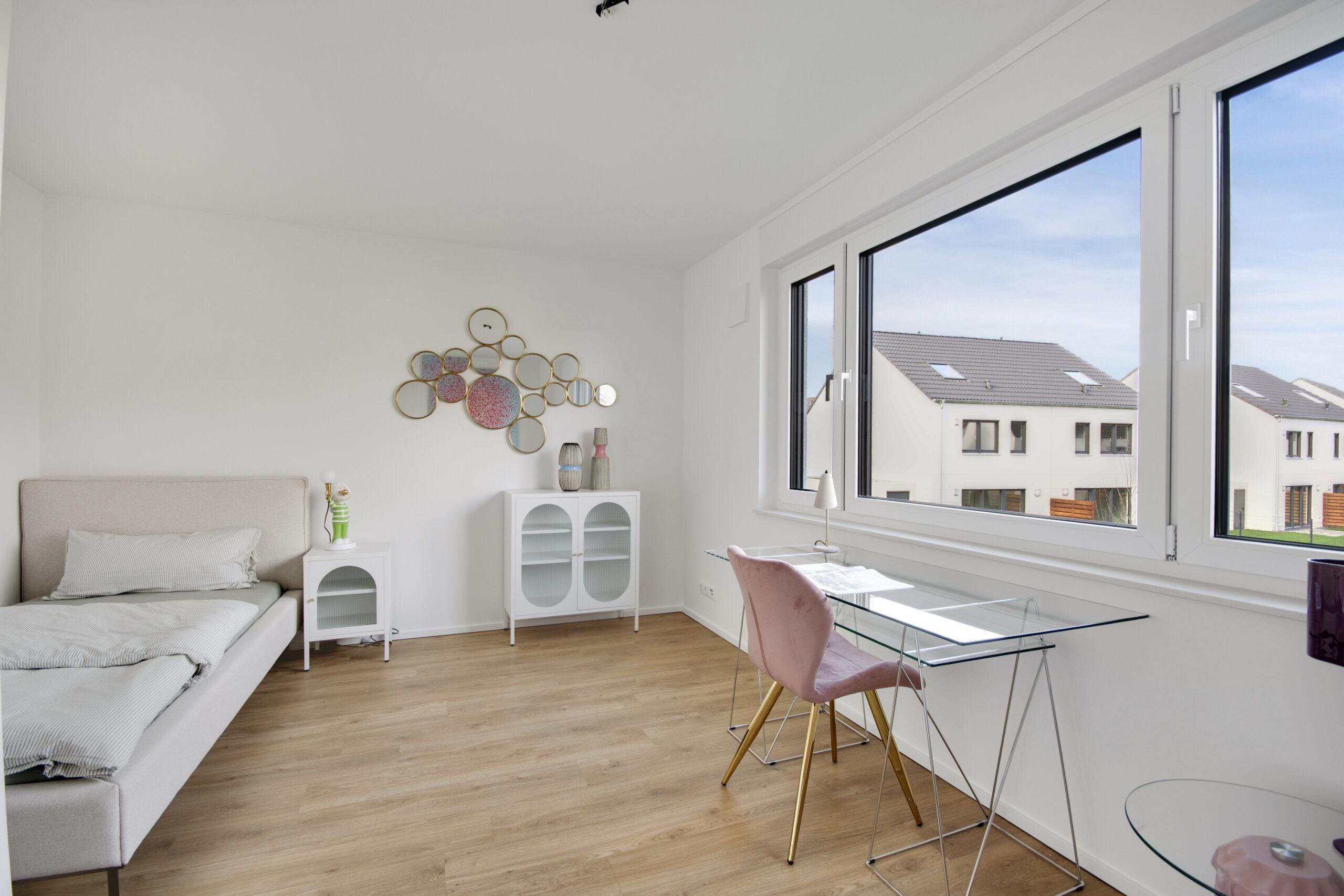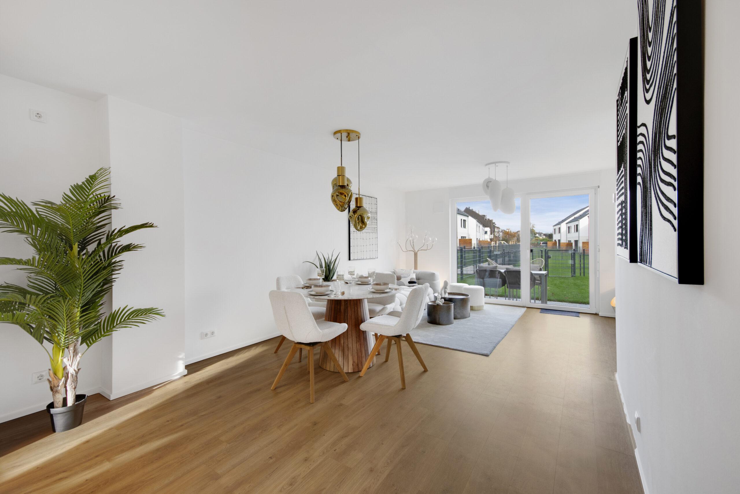 Ob als Reihenhaus oder Doppelhaus – dieses moderne Zuhause passt zu deinem Leben, egal ob du allein, zu zweit oder mit Familie einziehst. Auf 127 m² erwarten dich vier lichtdurchflutete Zimmer inklusive einem großzügigen Dachstudio, zwei Bäder, ein Gäste-WC sowie dein eigener Garten mit Terrasse.