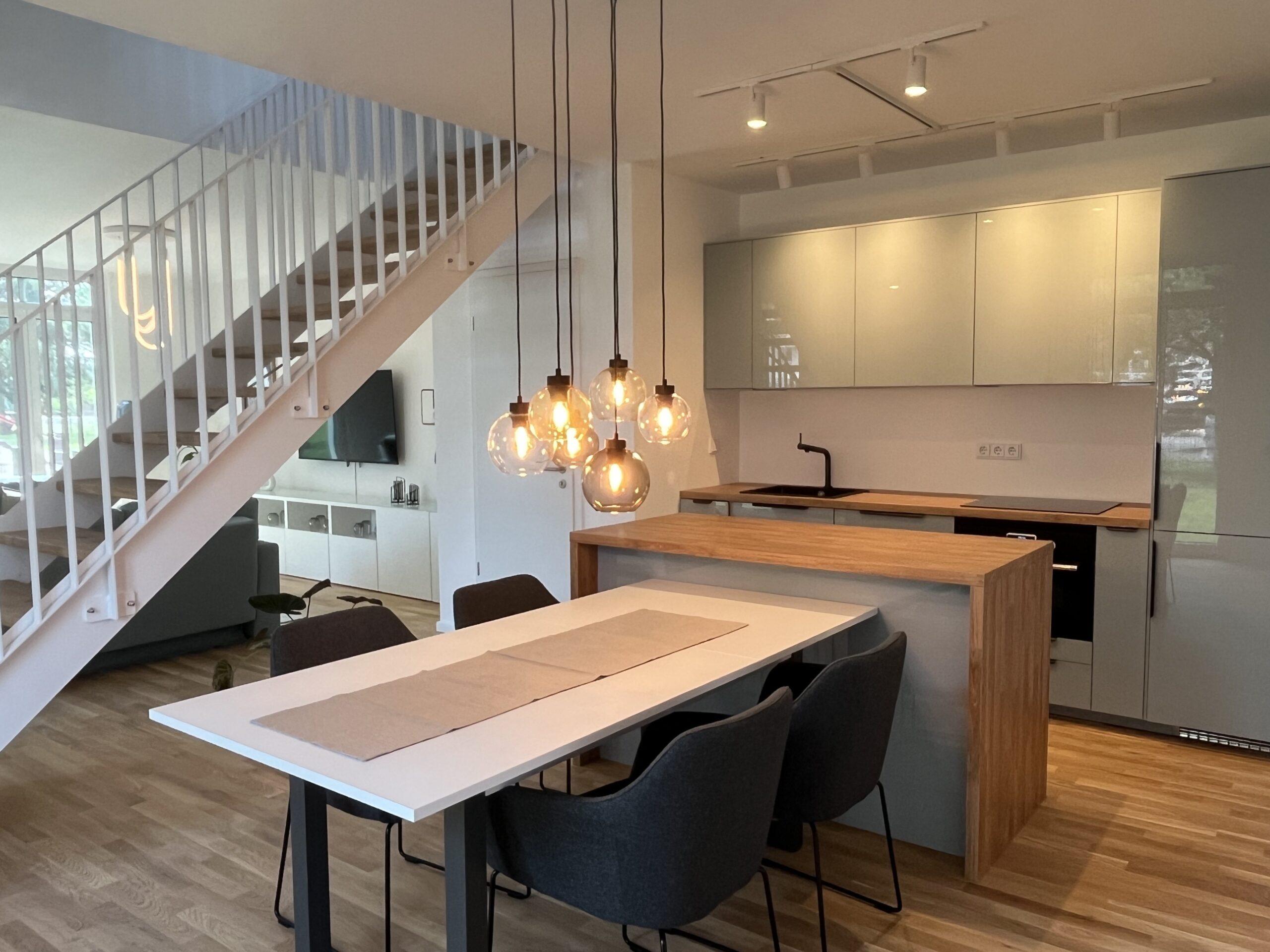- Moderne & hochwertige Küchengeräte von deutschen Herstellern: Backofen, Induktionsfeld, Dunstabzugshaube, Geschirrspüler, Kühl-Gefrierkombi & Umluftfilter