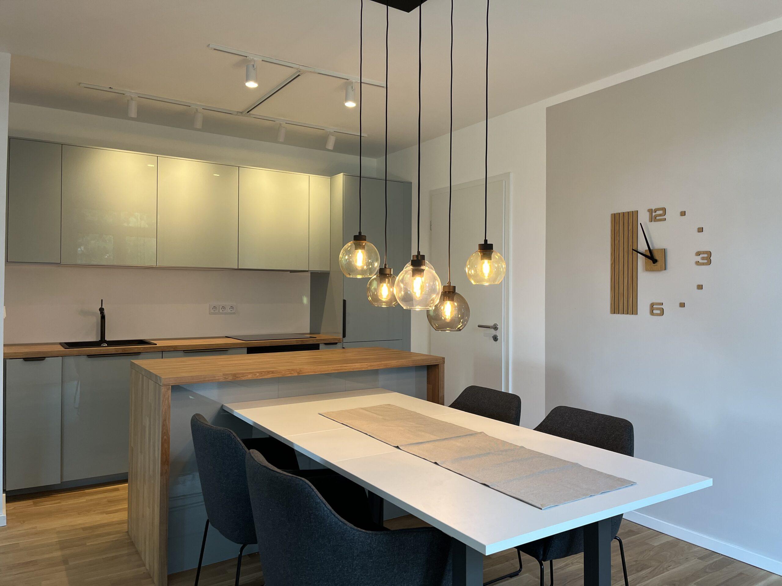 In Deiner neuen Küche wird Kochen zum Erlebnis: Modern, funktional und stilvoll gestaltet – hier passt einfach alles. Hochwertige Markengeräte von deutschen Herstellern sorgen für Leistung, auf die man sich im Alltag verlassen kann – vom Induktionsfeld über den Geschirrspüler bis hin zum Backofen. Die Arbeitsplatte bietet großzügig Platz zum Vorbereiten, während durchdachte Stauraumlösungen Ordnung schaffen und den Alltag erleichtern.