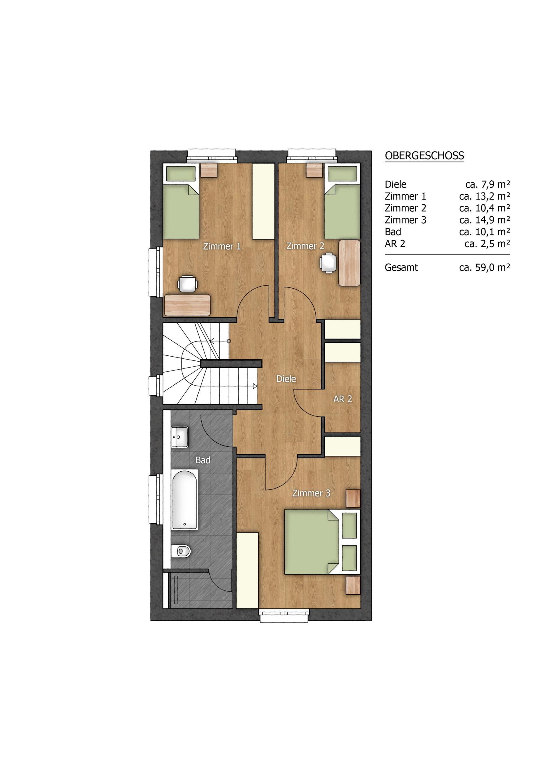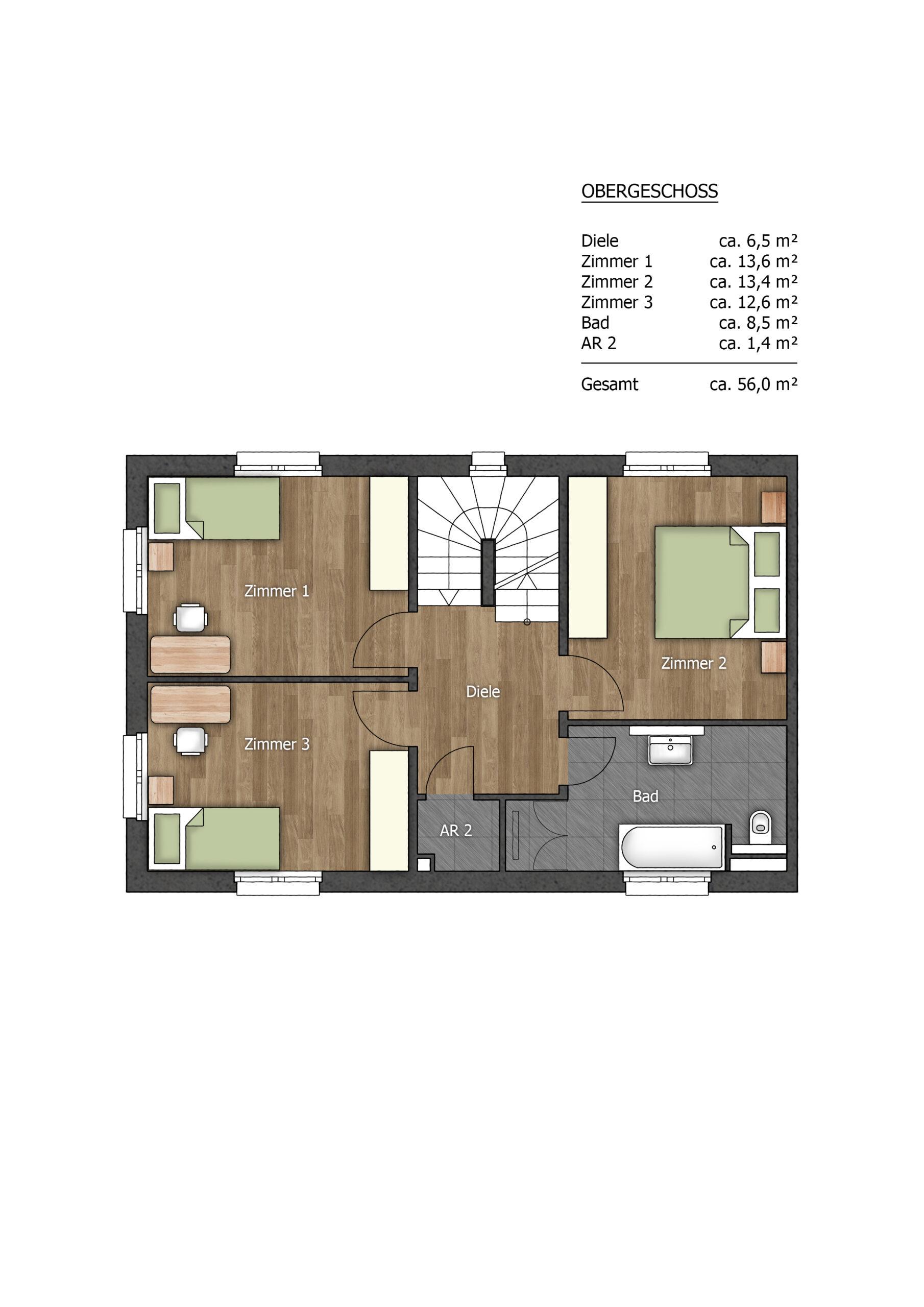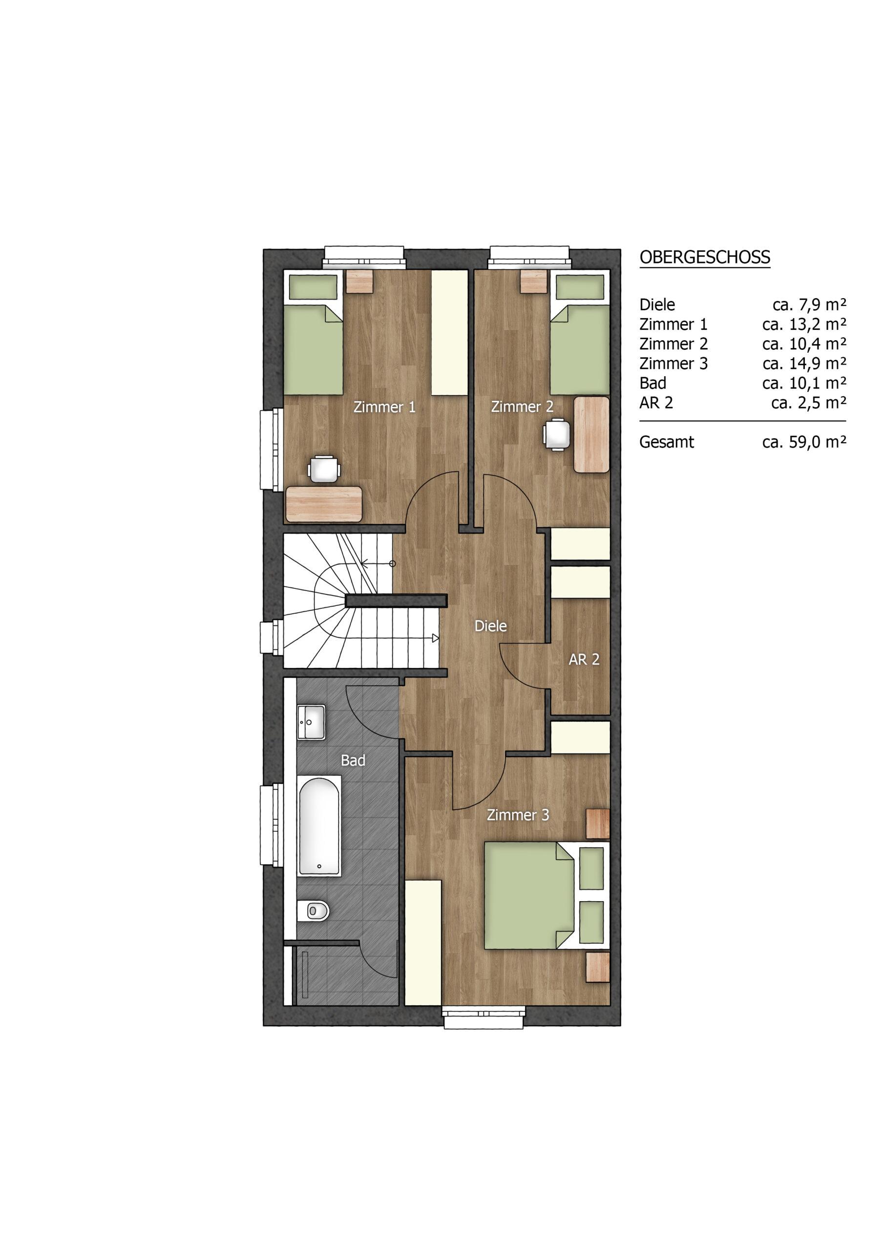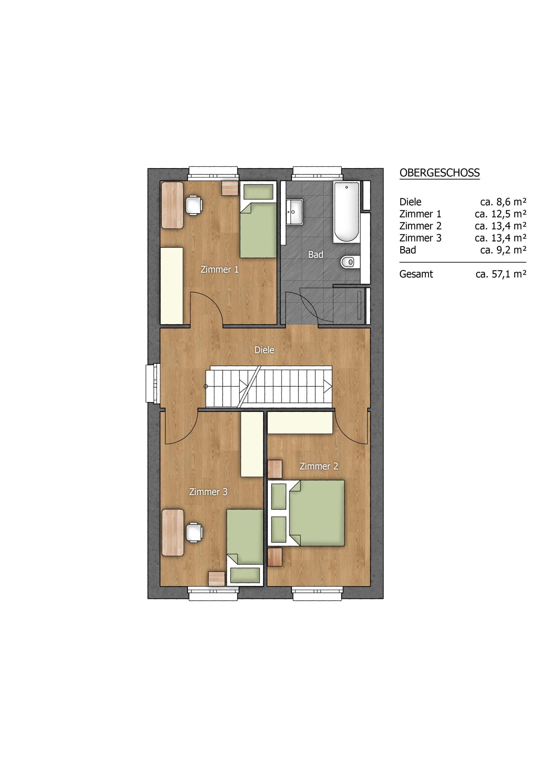 In Deinem neuen Zuhause wohnst Du modern und energieeffizient nach dem KfW-55-Standard. Jedes Haus verfügt über eine eigene Wärmepumpe, die nachhaltige Nahwärme liefert. Der Strom stammt überwiegend aus der hauseigenen Photovoltaikanlage. So werden Ressourcen besonders effizient genutzt und ein zukunftsfähiges, energiesparendes Wohnen ermöglicht.