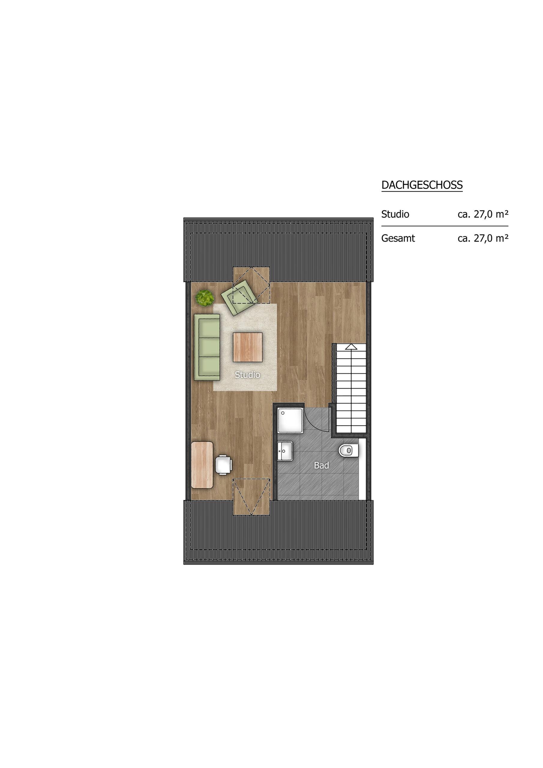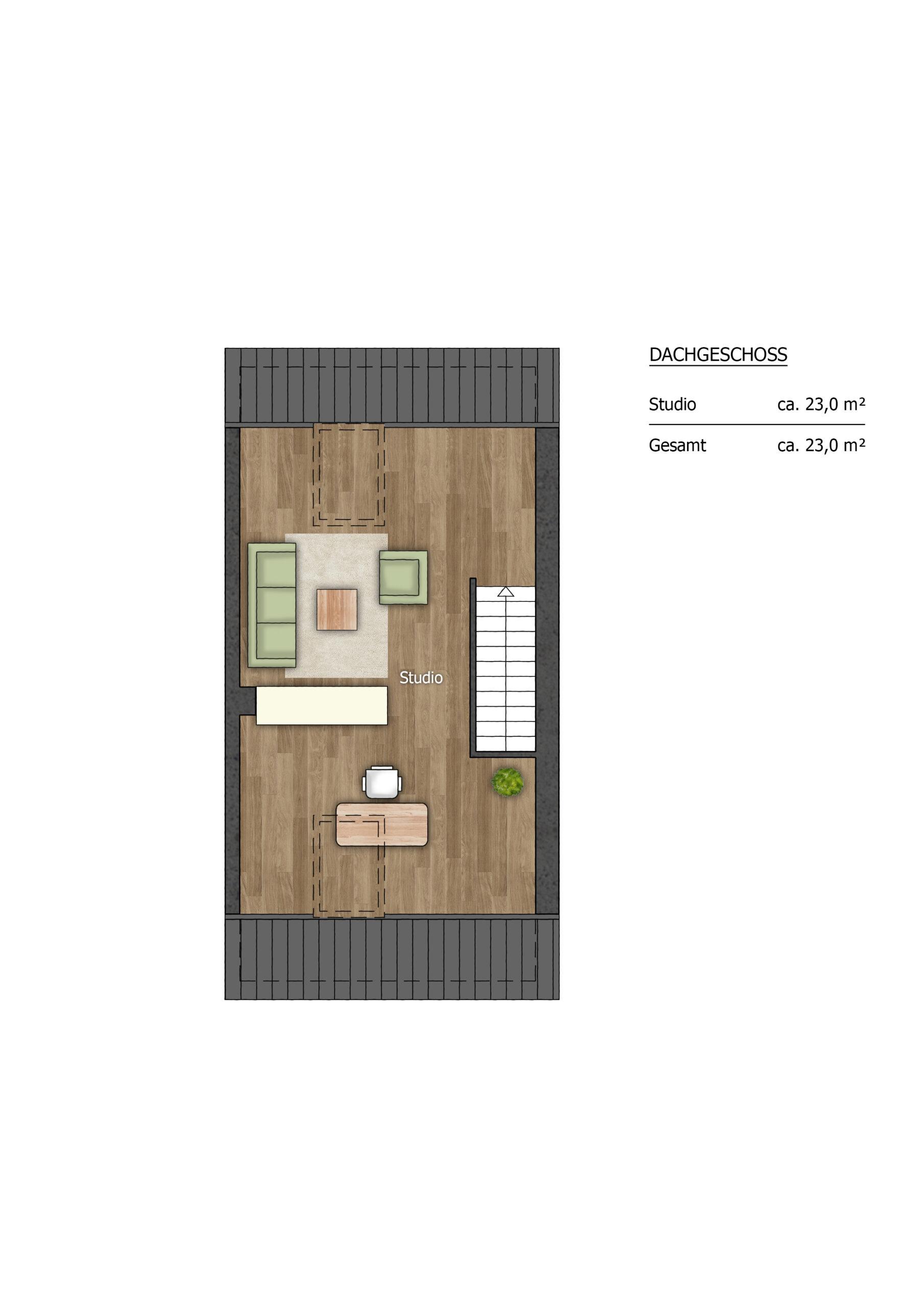 Dein neues Zuhause bietet dir den idealen Raum zum Wohlfühlen – egal ob du allein, zu zweit oder mit Familie einziehst. Auf ca. 110 m² erwarten dich vier lichtdurchflutete Zimmer inklusive einem großzügigen Dachstudio, ein Familienbad, ein Gäste-WC sowie dein eigener Garten mit Terrasse.