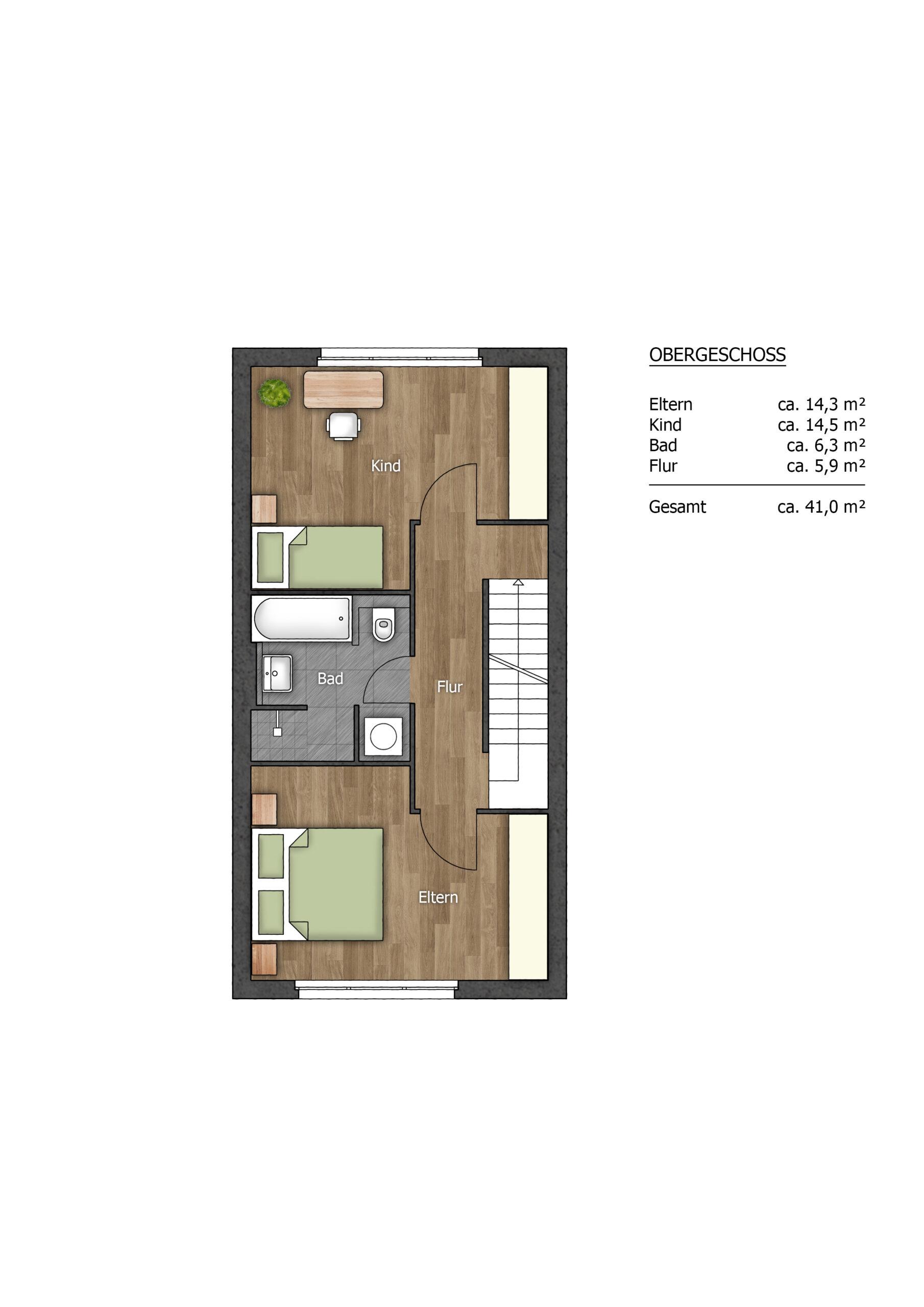 Ob als Reihenhaus oder Doppelhaus – dieses moderne Zuhause passt zu deinem Leben, egal ob du allein, zu zweit oder mit Familie einziehst. Auf ca. 127 m² erwarten dich fünf lichtdurchflutete Zimmer inklusive einem großzügigen Dachstudio, zwei Bäder, ein Gäste-WC sowie dein eigener Garten mit Terrasse.